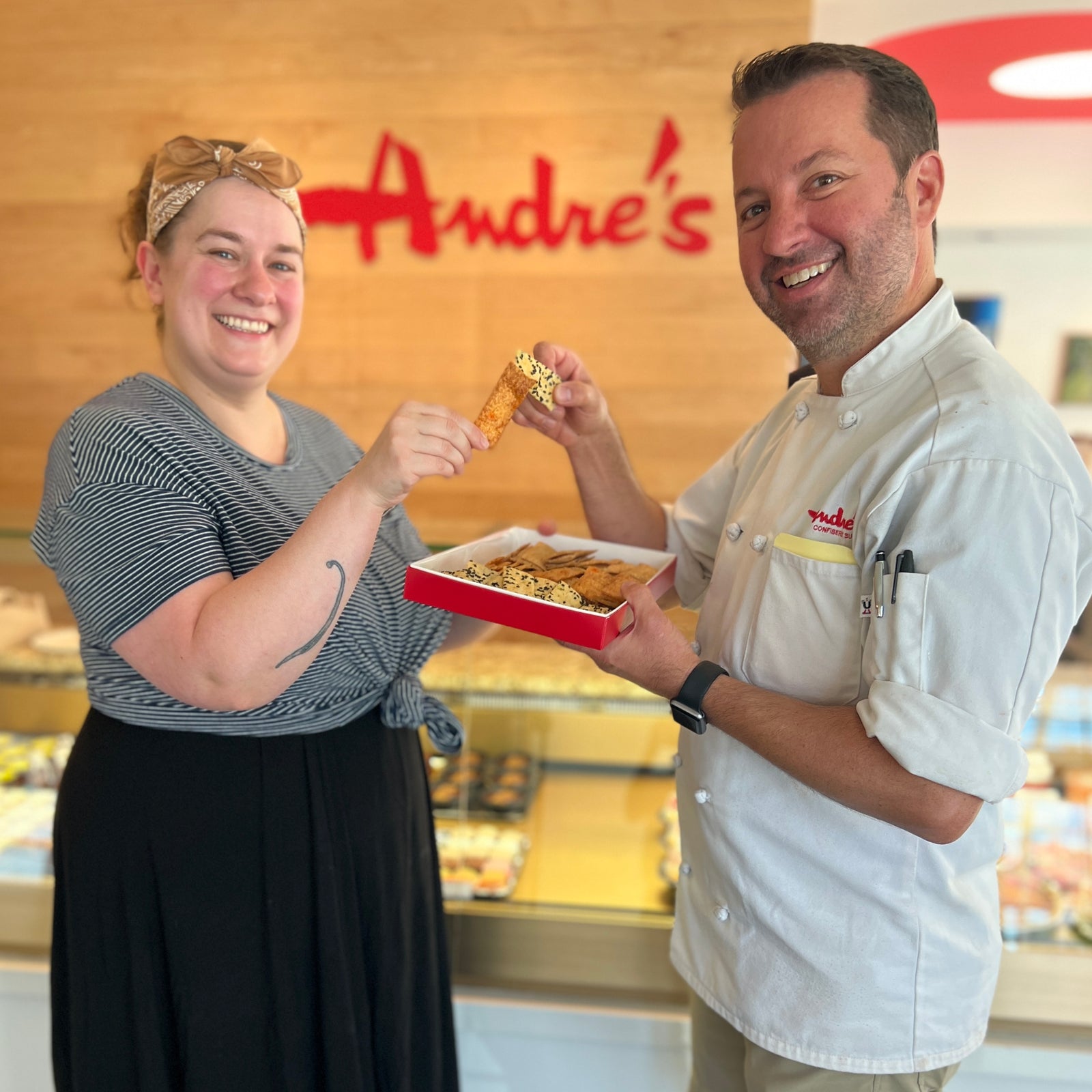 The Savory Cracker Trio combines Erin’s baking expertise with André’s European-inspired ingredients such as Gruyère cheese and Calabrian peppers; The collaboration was a celebration of Erin’s baking talent, her return to KC and the release of her new book, along with an exciting new friendship between Erin and the André’s family.
